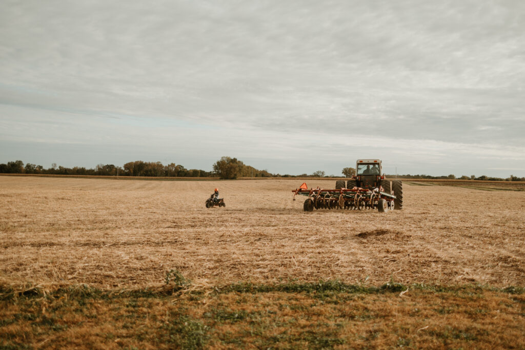 My husband and I farm with my parents. Our kids run around out here too 🙂