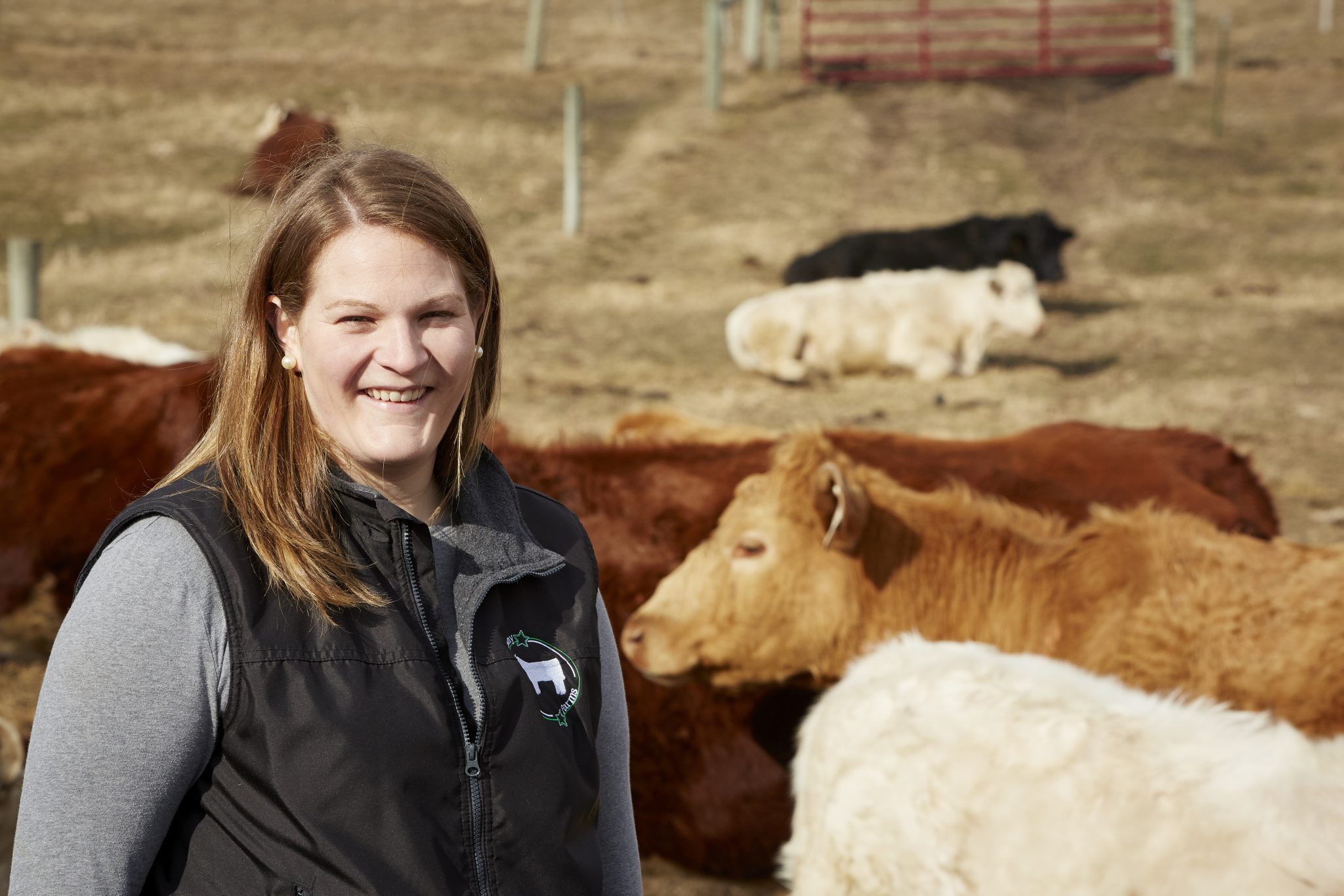 My husband and I are both 5th generation farmers, but on our own land. We raise beef cattle and grow grass, and I also work off the farm as a Regional Sales and Development Manager for an international agribusiness. I am also a new mom, and recently finished my PhD program!